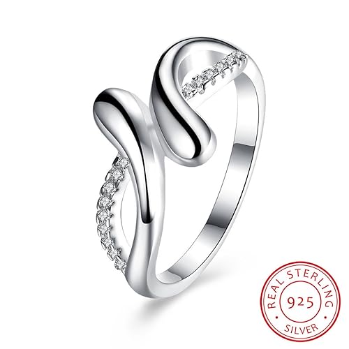 Hmilydyk 925 Silver Double Teardrop Ring With Cz Inlaid