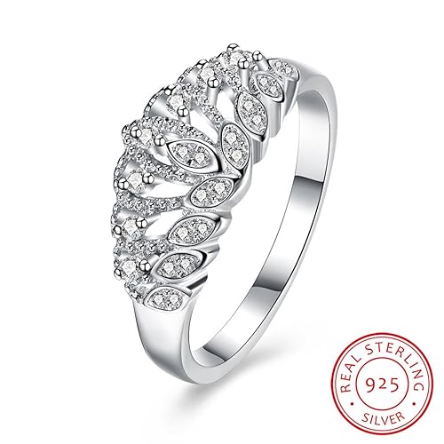 Hmilydyk Women 925 Silver Princess Crown Ring With Cz Inlaid