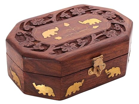 Store Indya Cyber Monday Decorative Handmade Wooden Box Jewelry Trinket Holder Organizer Keepsake Storage Box Elephant Brass Inlay