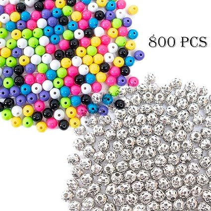 800 Pcs Beads For Jewelry Making Supplies For Adults 400 Filigree Metal Spacers 8 Mm 400 Multi Color Acrylic Round Beads 8 Mm Quality Bulk