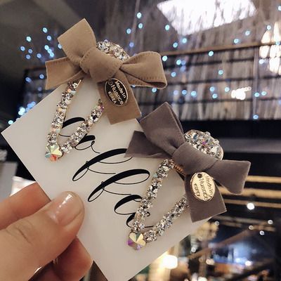 Japan And South Korea New High End Boutique Hair Accessories Head Jewelry Korean Fabric Bow With Diamonds Super Flash Liu Seaside Clip