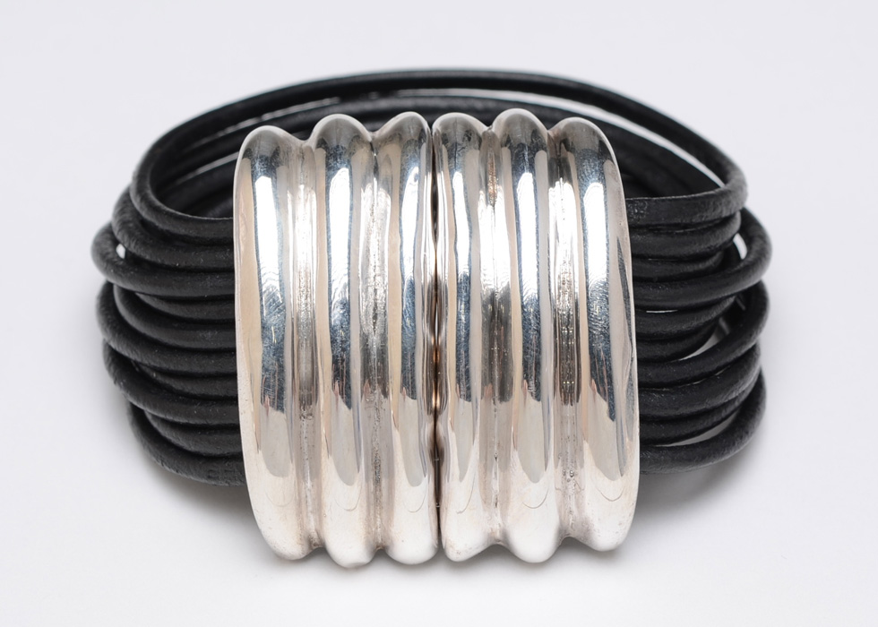 E L Designs Sterling And Black Leather Bracelet