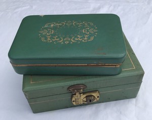 Details About Shabby Green Jewelry Box Lot Gold Storage Vintage Farrington Texol Usa Travel