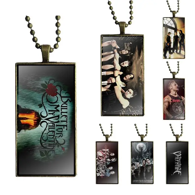 Us 1 89 Ej Glaze Bullet For My Valentine For Women High Quality Girls Glass Pendant Necklace Handmade Half Pendant Rectangle Necklace In Pendant