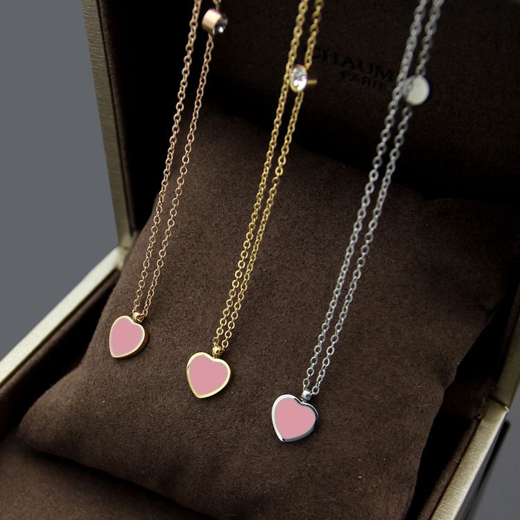 2019 Titanium Steel Jewelry Wholesale Single Diamond Pink Heart Necklace Lucury Brand Designer Jewelry Women Necklaces Free Shipping