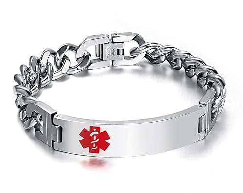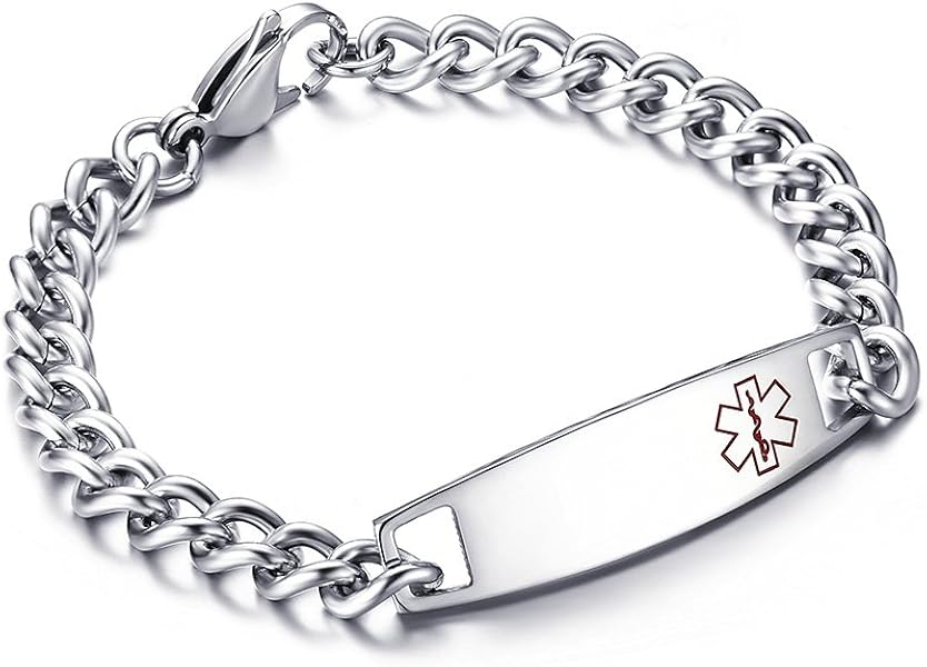 Men S Medical Alert Id Bracelet Tag Stainless Steel Link Chain Wrist Free Engraving 8 Inches