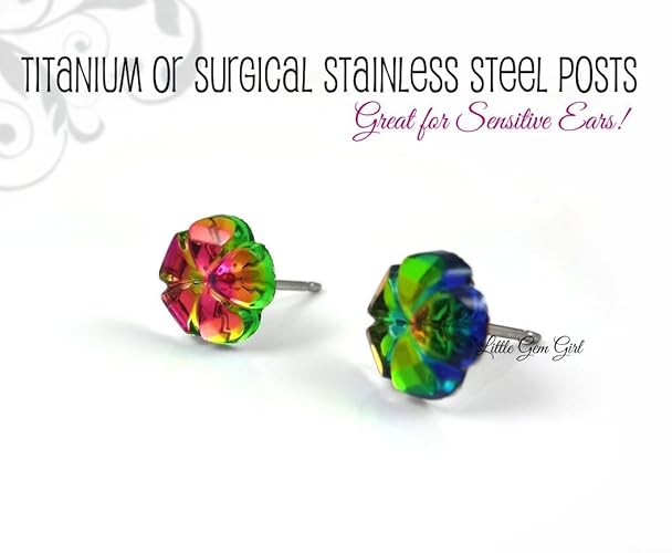 8mm Rainbow Tiny Hawaiian Hibiscus Flower Stud Earrings With Titanium Or Surgical Stainless Steel Posts Nickel Free For Sensitive Ears Color