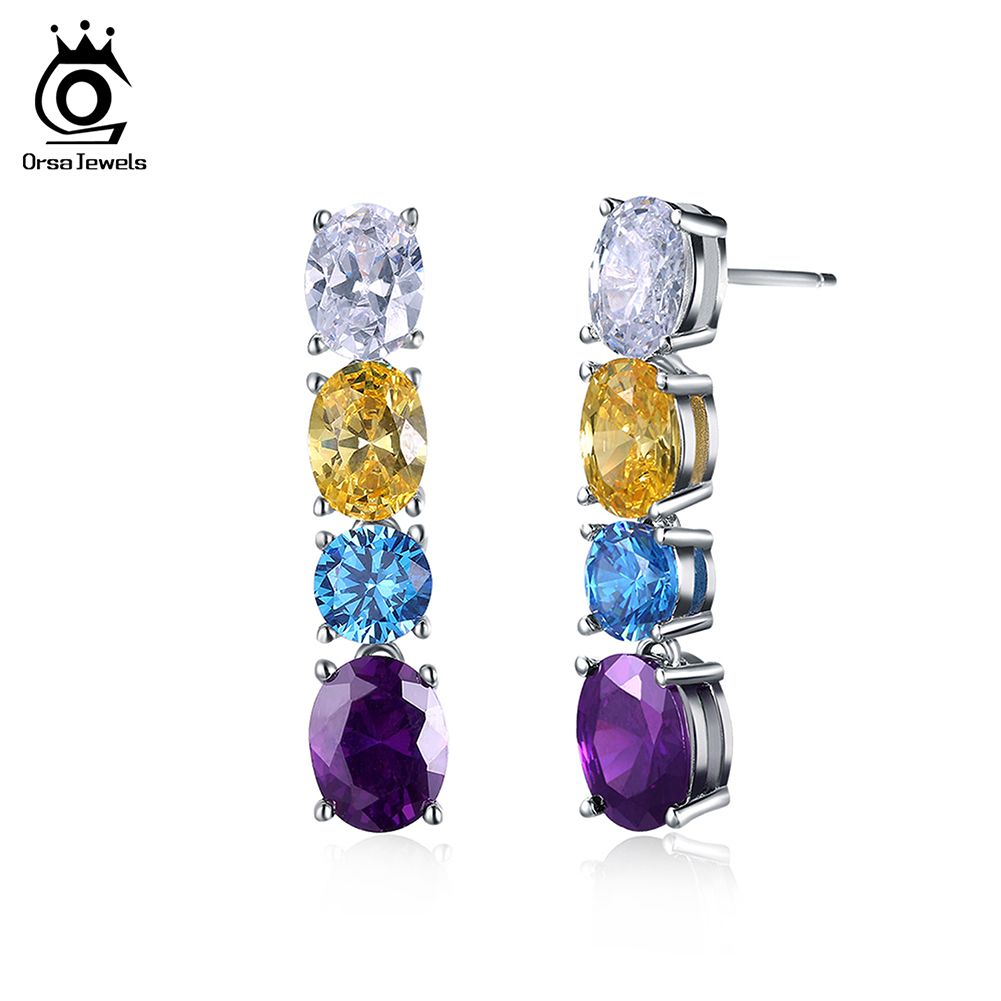 2017 Fashion Stud Earrings With 4 Pieces Multicolour Aaa Austrian Cubic Zircon Lead Nickel Free Earrings Oe162