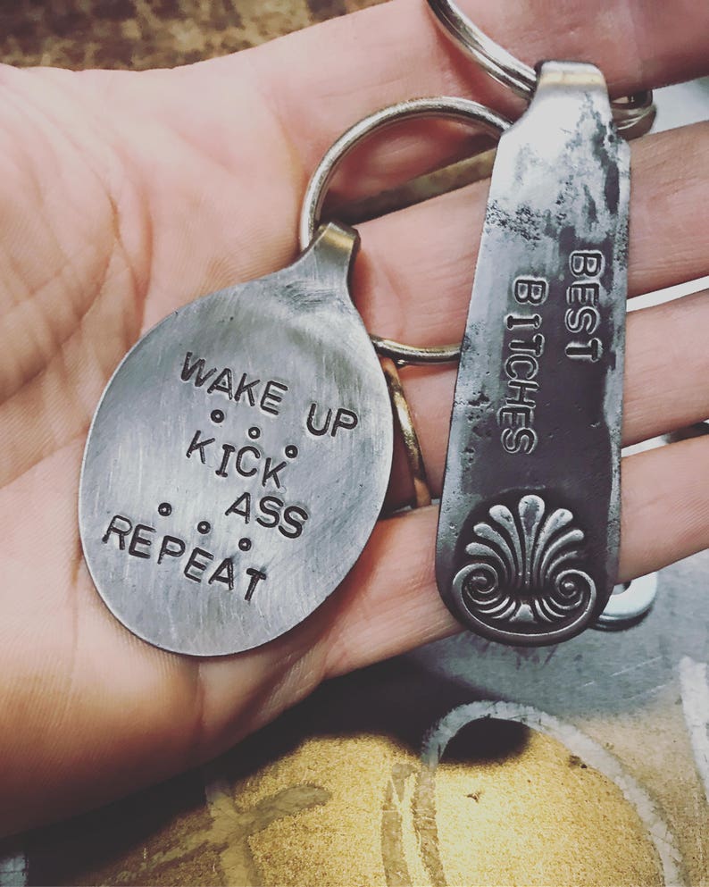 Spoon Custom Keychain Flatten Silverware Wake Up Kick Ass Repeat Unique Best Friends Key Ring Message Carry Keys Everywhere