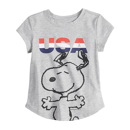 12 months med grey your little one will love showing off american pride with this family fun peanuts snoopy graphic tee. Peanuts infant toddler girls snoopy woodhouse usa patriotic flag tee shirt. Plus size family fun peanuts snoopy usa graphic tee.