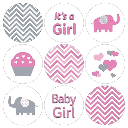 Pink Gray Elephant 2 Inch It S A Girl Stickers 20 Labels