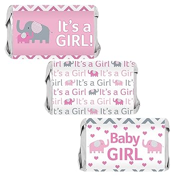 Pink And Gray Elephant Girl Baby Shower Mini Candy Bar Wrappers 45 Stickers